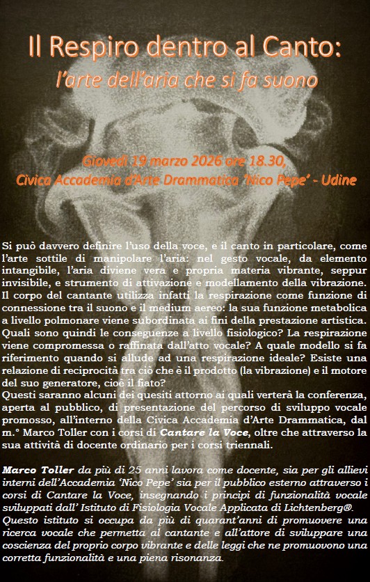 Questi saranno alcuni dei quesiti attorno ai quali verterà la conferenza, aperta al pubblico, di presentazione del percorso di sviluppo vocale promosso, all’interno della Civica Accademia d’Arte Drammatica, dal m.° Marco Toller con i corsi di Cantare la Voce, oltre che attraverso la sua attività di docente ordinario per i corsi triennali.